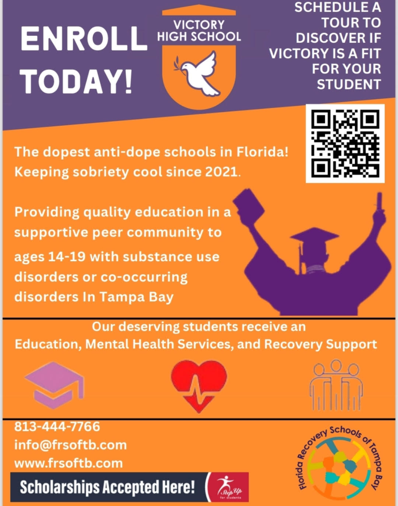 Conducive Environment: Florida Recovery Schools of Tampa Bay, Inc. will provide a safe and positive environment, for these courageous teens, who are facing substance use disorder and can now focus on receiving a good education. Florida has recognized the need for safe educational and social options for young people beginning their journey in recovery from alcohol and substance use disorders. Operating on the principles that schools offer safe harbor for the recovery lifestyle, while providing a quality education.